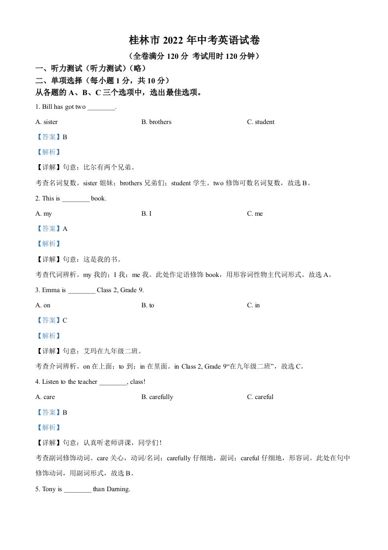 当前位置: 首页初中资源中考真题正文 2022年广西桂林市中考英语真题(含答案)_共16页 中考真题 1 周前 0 0 10 以上为部分内容预览,如需源文档请登录您的会员账号进行下载! 声明:本站所有文章,如无特殊说明或标注,均为本站原创发布。任何个人或组织,在未征得本站同意时,禁止复制、盗用、采集、发布本站内容到任何网站、书籍等各类媒体平台。如若本站内容侵犯了原著者的合法权益,可联系我们进行处理。 尚学资源永久会员 打赏 收藏 海报 链接