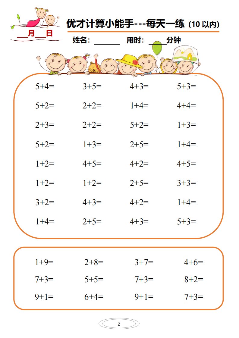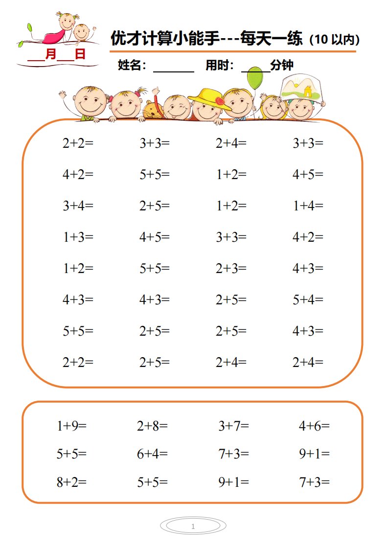 一上数学-10以内小娃计算小能手第一阶段1-77天合集_共77页