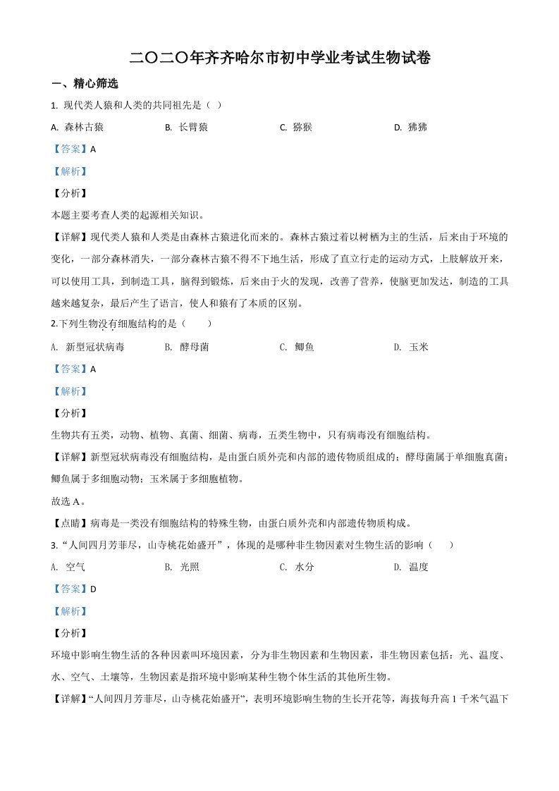 当前位置: 首页初中资源中考真题正文 黑龙江省齐齐哈尔市、黑河市、大兴安岭地区2020年中考生物试题(含答案)_共22页 中考真题 1 周前 0 0 15 以上为部分内容预览,如需源文档请登录您的会员账号进行下载! 声明:本站所有文章,如无特殊说明或标注,均为本站原创发布。任何个人或组织,在未征得本站同意时,禁止复制、盗用、采集、发布本站内容到任何网站、书籍等各类媒体平台。如若本站内容侵犯了原著者的合法权益,可联系我们进行处理。 尚学资源永久会员 打赏 收藏 海报 链接