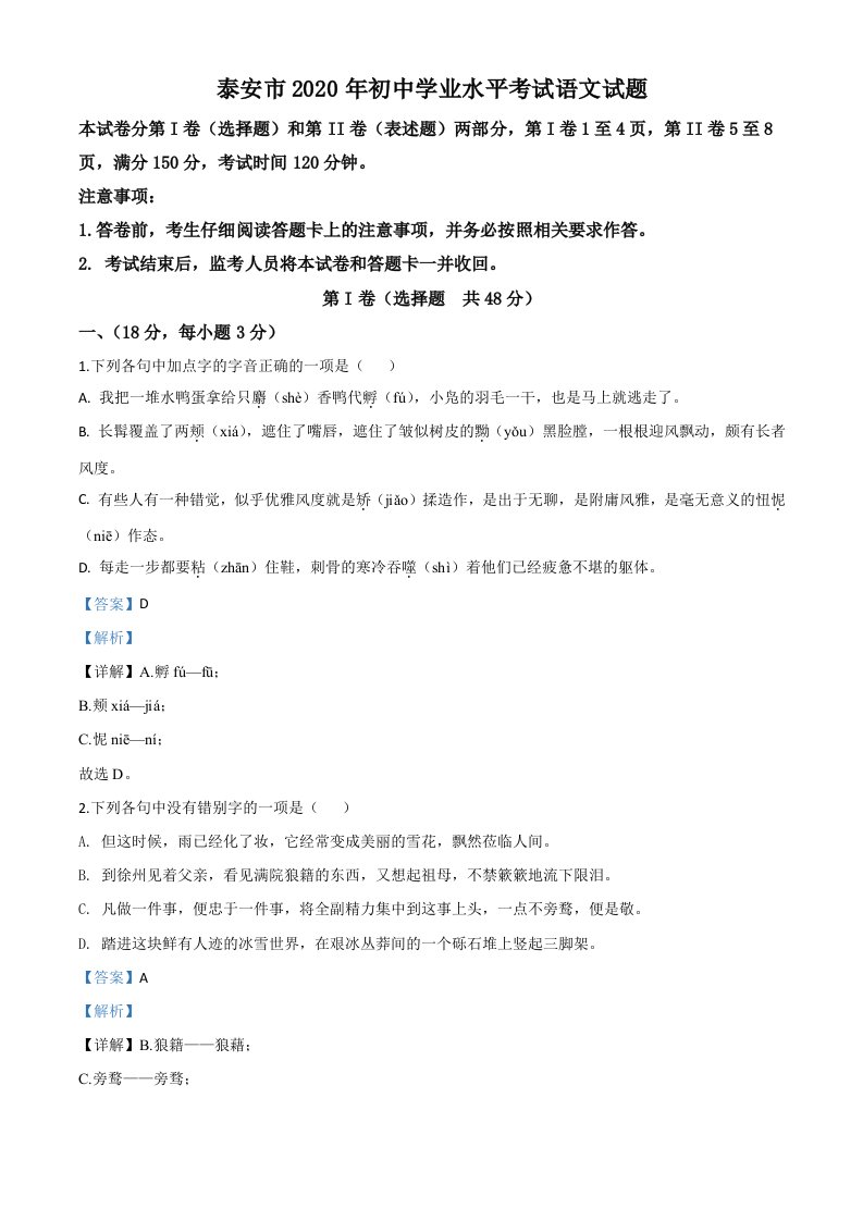 当前位置: 首页初中资源中考真题正文 山东省泰安市2020年中考语文试题(含答案)_共19页 中考真题 1 周前 0 0 10 以上为部分内容预览,如需源文档请登录您的会员账号进行下载! 声明:本站所有文章,如无特殊说明或标注,均为本站原创发布。任何个人或组织,在未征得本站同意时,禁止复制、盗用、采集、发布本站内容到任何网站、书籍等各类媒体平台。如若本站内容侵犯了原著者的合法权益,可联系我们进行处理。 尚学资源永久会员 打赏 收藏 海报 链接