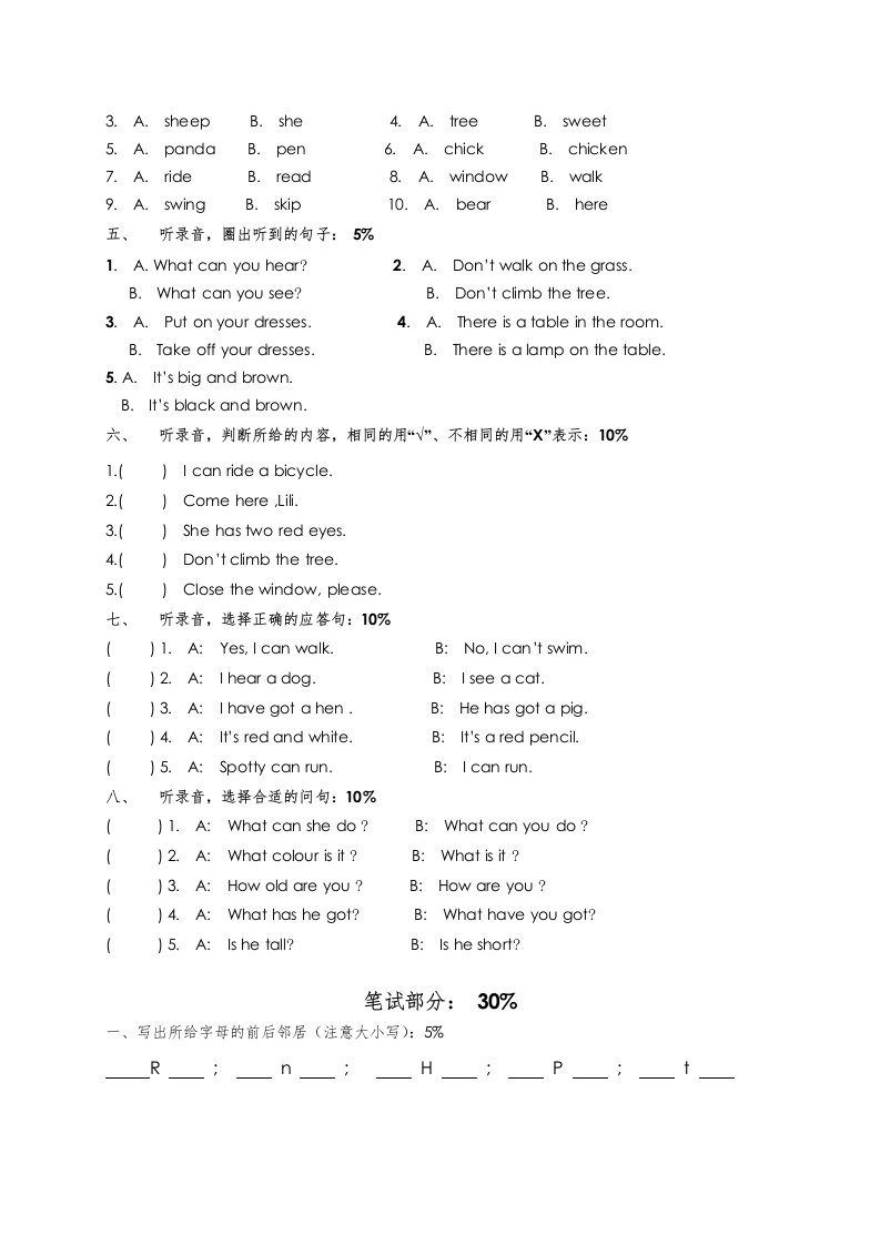 当前位置: 首页小学资源小学二年级正文 二年级英语上册期中试题(4)(人教版一起点)_共4页 小学二年级 1 周前 0 0 5 以上为部分内容预览,如需源文档请登录您的会员账号进行下载! 声明:本站所有文章,如无特殊说明或标注,均为本站原创发布。任何个人或组织,在未征得本站同意时,禁止复制、盗用、采集、发布本站内容到任何网站、书籍等各类媒体平台。如若本站内容侵犯了原著者的合法权益,可联系我们进行处理。 尚学资源永久会员 打赏 收藏 海报 链接