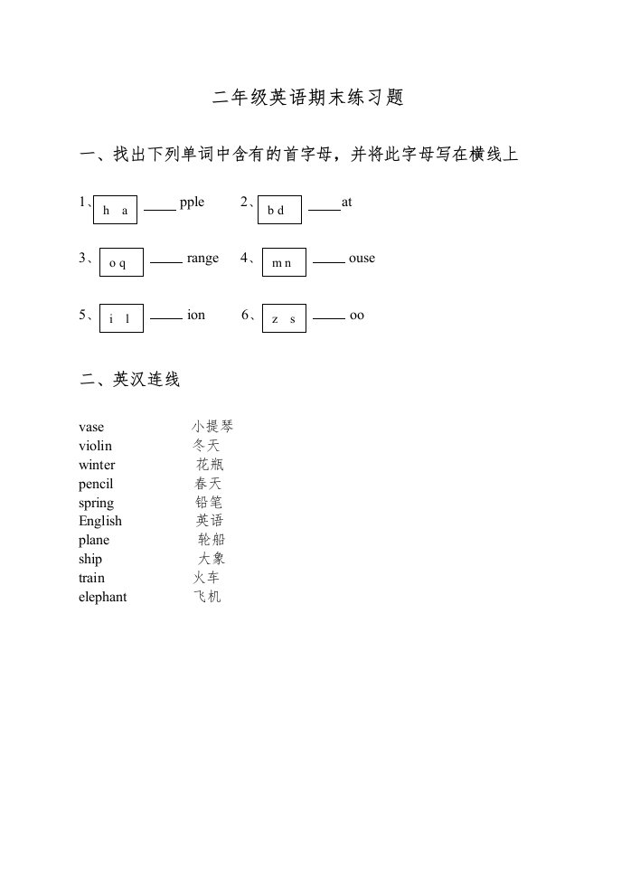 二年级英语上册期末质量检测卷(4)(人教版一起点)_共2页