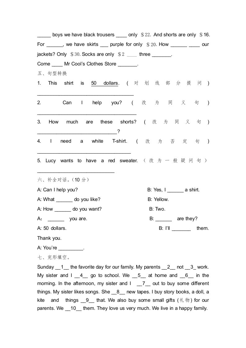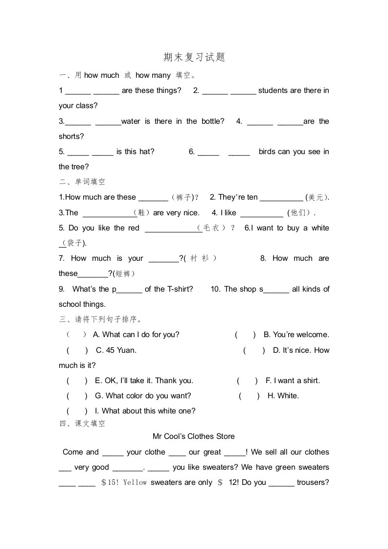 二年级英语上册期末质量检测卷(8)(人教版一起点)_共3页