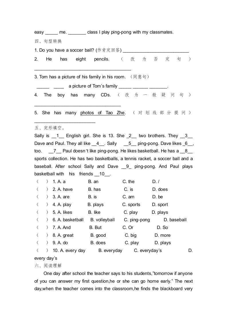 二年级英语上册期末质量检测卷(10)(人教版一起点)_共3页