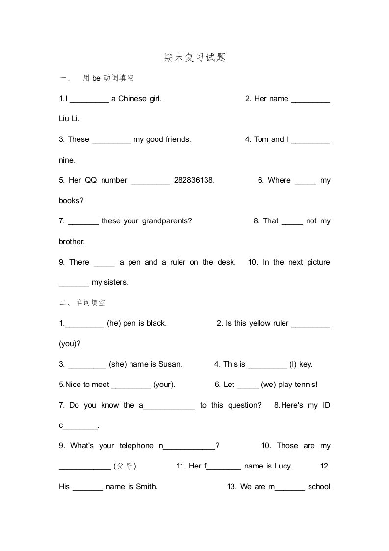 二年级英语上册期末质量检测卷(11)(人教版一起点)_共3页
