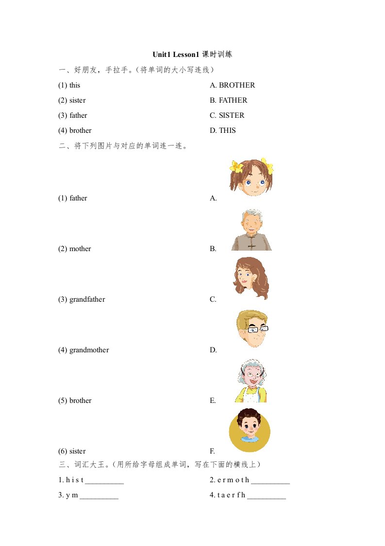 二年级英语上册Unit1_Lesson1课时训练(人教版一起点)_共3页