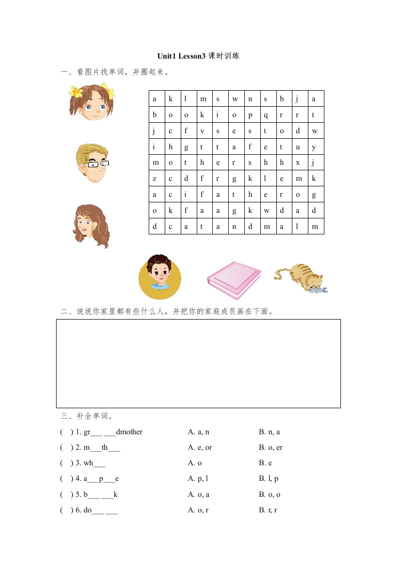 二年级英语上册Unit1_Lesson3课时训练(人教版一起点)_共3页