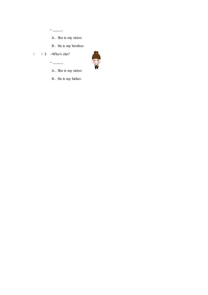 当前位置: 首页小学资源小学二年级正文 二年级英语上册Unit1习题第2课时(人教版一起点)_共3页 小学二年级 1 周前 0 0 5 以上为部分内容预览,如需源文档请登录您的会员账号进行下载! 声明:本站所有文章,如无特殊说明或标注,均为本站原创发布。任何个人或组织,在未征得本站同意时,禁止复制、盗用、采集、发布本站内容到任何网站、书籍等各类媒体平台。如若本站内容侵犯了原著者的合法权益,可联系我们进行处理。 尚学资源永久会员 打赏 收藏 海报 链接