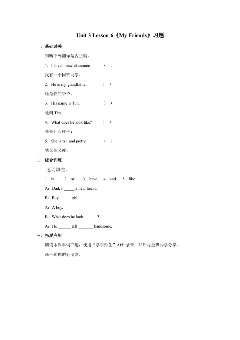 当前位置: 首页小学资源小学二年级正文 二年级英语上册Unit3MyFriendsLesson6习题(人教版一起点)_共2页 小学二年级 1 周前 0 0 5 以上为部分内容预览,如需源文档请登录您的会员账号进行下载! 声明:本站所有文章,如无特殊说明或标注,均为本站原创发布。任何个人或组织,在未征得本站同意时,禁止复制、盗用、采集、发布本站内容到任何网站、书籍等各类媒体平台。如若本站内容侵犯了原著者的合法权益,可联系我们进行处理。 尚学资源永久会员 打赏 收藏 海报 链接