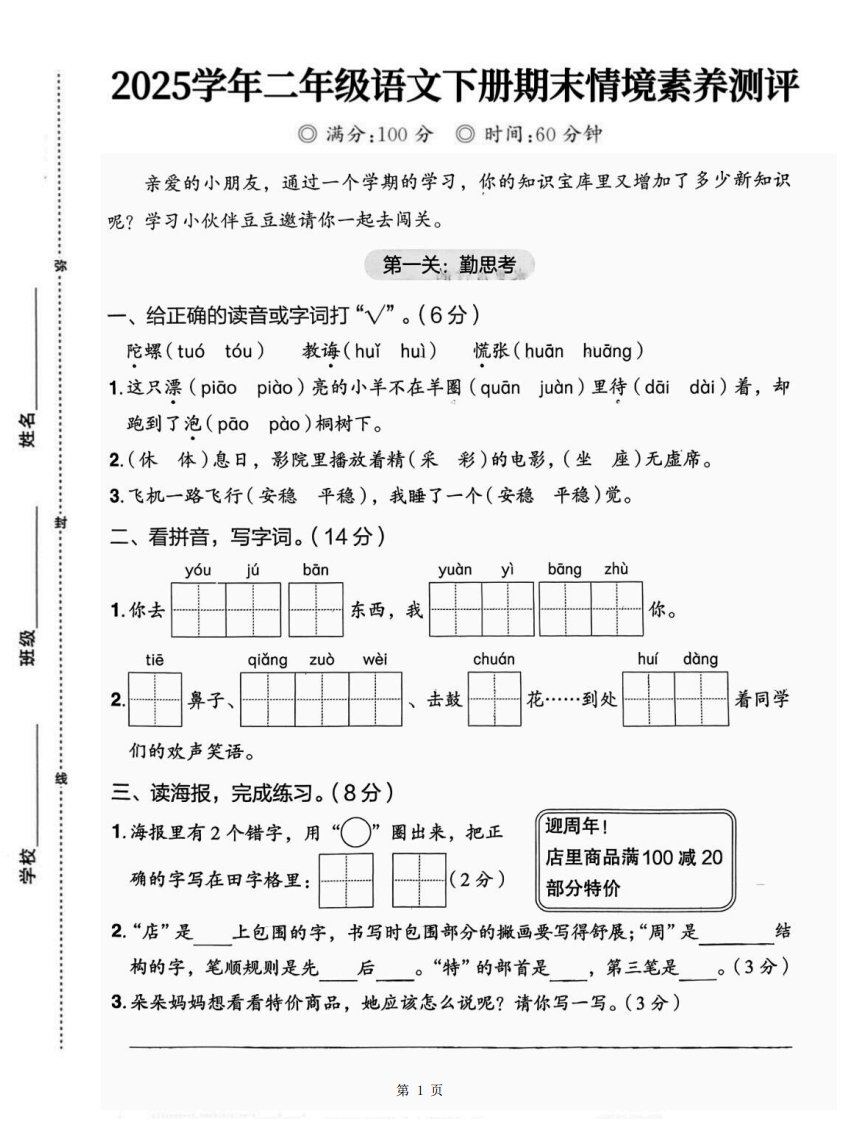 当前位置: 首页小学资源小学二年级正文 25二下语文期末情境素养测评卷(含答案5页)_共5页 小学二年级 1 周前 0 0 5 以上为部分内容预览,如需源文档请登录您的会员账号进行下载! 声明:本站所有文章,如无特殊说明或标注,均为本站原创发布。任何个人或组织,在未征得本站同意时,禁止复制、盗用、采集、发布本站内容到任何网站、书籍等各类媒体平台。如若本站内容侵犯了原著者的合法权益,可联系我们进行处理。 尚学资源永久会员 打赏 收藏 海报 链接