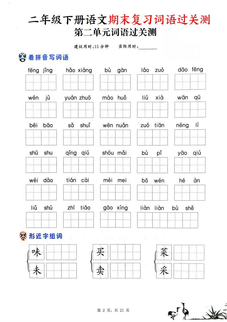 当前位置: 首页小学资源小学二年级正文 二下语文期末复习词语过关测(含答案21页)_共21页 小学二年级 1 周前 0 0 15 以上为部分内容预览,如需源文档请登录您的会员账号进行下载! 声明:本站所有文章,如无特殊说明或标注,均为本站原创发布。任何个人或组织,在未征得本站同意时,禁止复制、盗用、采集、发布本站内容到任何网站、书籍等各类媒体平台。如若本站内容侵犯了原著者的合法权益,可联系我们进行处理。 尚学资源永久会员 打赏 收藏 海报 链接