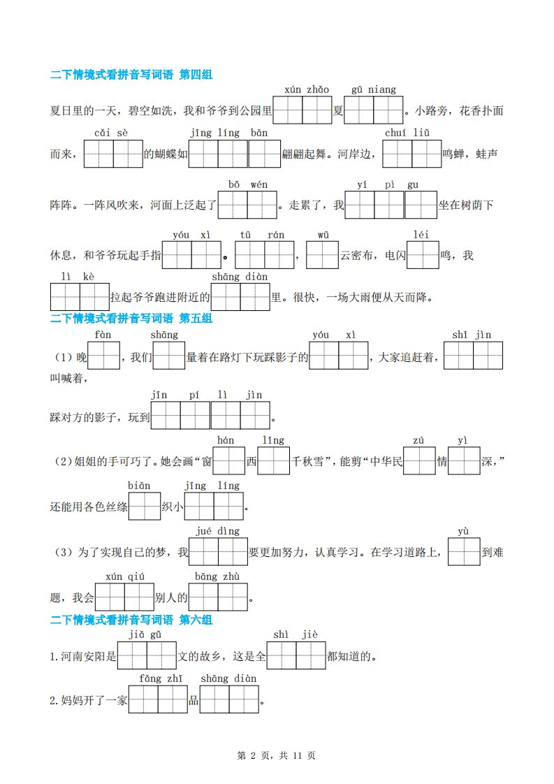 当前位置: 首页小学资源小学二年级正文 二下语文期末复习情景式看拼音写词语(含答案11页)_共11页 小学二年级 1 周前 0 0 10 以上为部分内容预览,如需源文档请登录您的会员账号进行下载! 声明:本站所有文章,如无特殊说明或标注,均为本站原创发布。任何个人或组织,在未征得本站同意时,禁止复制、盗用、采集、发布本站内容到任何网站、书籍等各类媒体平台。如若本站内容侵犯了原著者的合法权益,可联系我们进行处理。 尚学资源永久会员 打赏 收藏 海报 链接