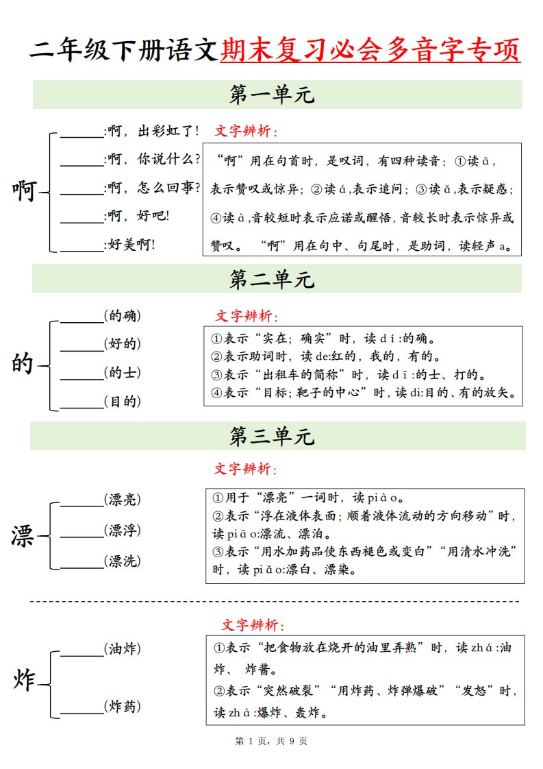 当前位置: 首页小学资源小学二年级正文 二下语文期末复习必会多音字专项练习(9页)_共9页 小学二年级 1 周前 0 0 5 以上为部分内容预览,如需源文档请登录您的会员账号进行下载! 声明:本站所有文章,如无特殊说明或标注,均为本站原创发布。任何个人或组织,在未征得本站同意时,禁止复制、盗用、采集、发布本站内容到任何网站、书籍等各类媒体平台。如若本站内容侵犯了原著者的合法权益,可联系我们进行处理。 尚学资源永久会员 打赏 收藏 海报 链接