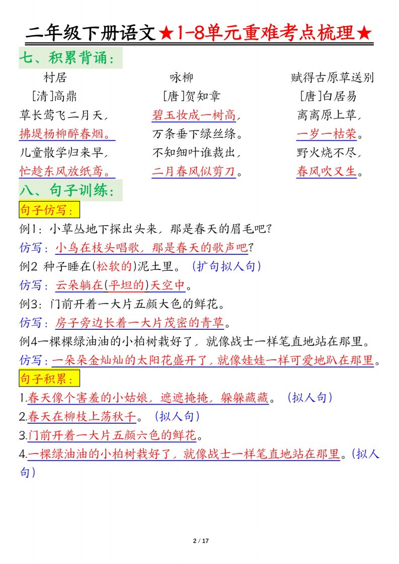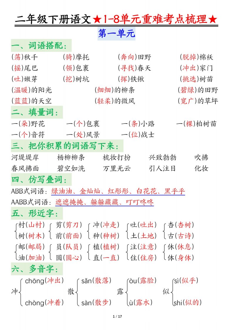 当前位置: 首页小学资源小学二年级正文 二下语文期末复习1-8单元重难考点梳理总结(17页)_共17页 小学二年级 1 周前 0 0 10 以上为部分内容预览,如需源文档请登录您的会员账号进行下载! 声明:本站所有文章,如无特殊说明或标注,均为本站原创发布。任何个人或组织,在未征得本站同意时,禁止复制、盗用、采集、发布本站内容到任何网站、书籍等各类媒体平台。如若本站内容侵犯了原著者的合法权益,可联系我们进行处理。 尚学资源永久会员 打赏 收藏 海报 链接
