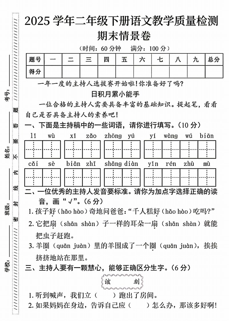 当前位置: 首页小学资源小学二年级正文 25二下语文期末情景卷(4页)_共4页 小学二年级 1 周前 0 0 5 以上为部分内容预览,如需源文档请登录您的会员账号进行下载! 声明:本站所有文章,如无特殊说明或标注,均为本站原创发布。任何个人或组织,在未征得本站同意时,禁止复制、盗用、采集、发布本站内容到任何网站、书籍等各类媒体平台。如若本站内容侵犯了原著者的合法权益,可联系我们进行处理。 尚学资源永久会员 打赏 收藏 海报 链接