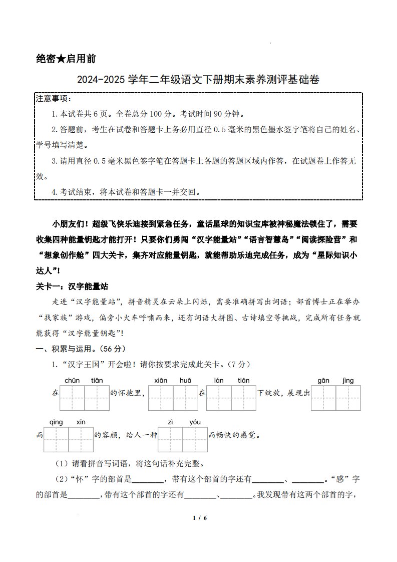 当前位置: 首页小学资源小学二年级正文 24-25二下语文期末素养测评基础卷一(含答题卡+答案14页)_共14页 小学二年级 1 周前 0 0 10 以上为部分内容预览,如需源文档请登录您的会员账号进行下载! 声明:本站所有文章,如无特殊说明或标注,均为本站原创发布。任何个人或组织,在未征得本站同意时,禁止复制、盗用、采集、发布本站内容到任何网站、书籍等各类媒体平台。如若本站内容侵犯了原著者的合法权益,可联系我们进行处理。 尚学资源永久会员 打赏 收藏 海报 链接