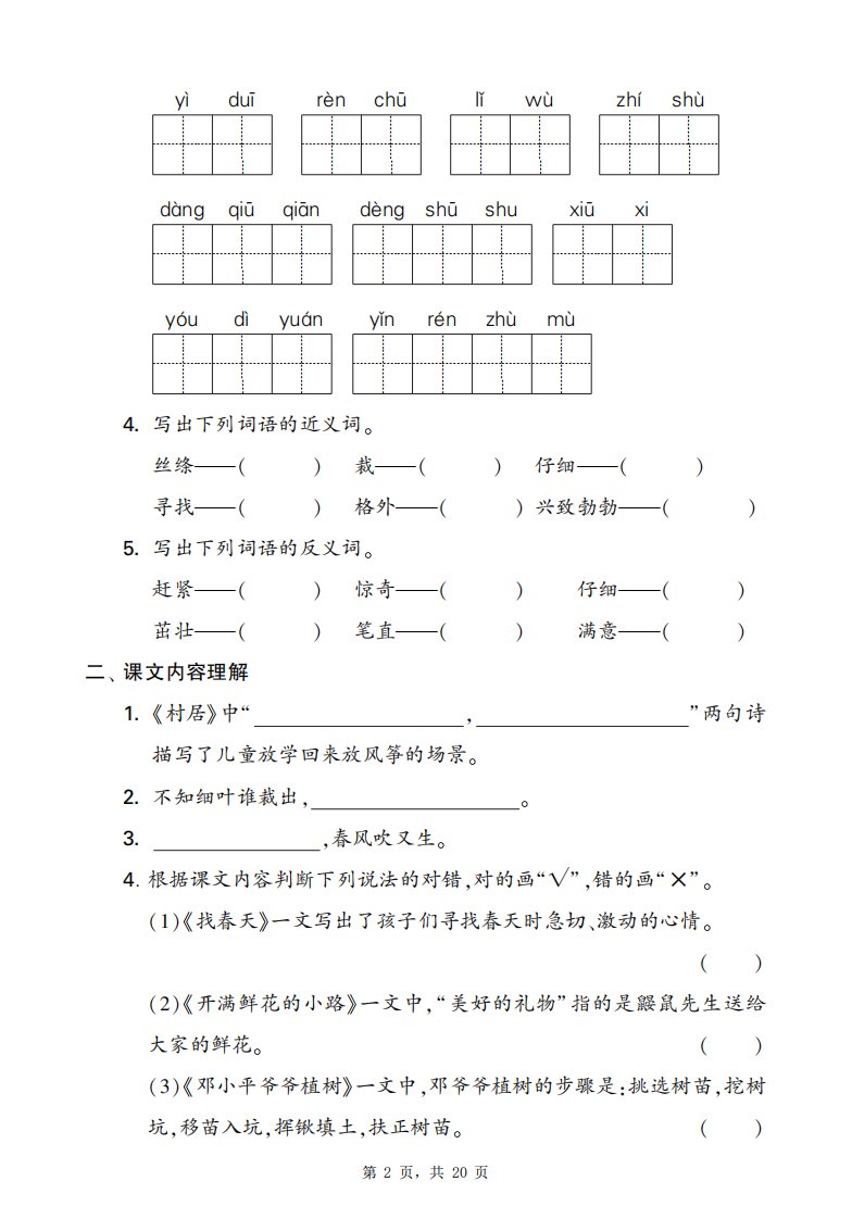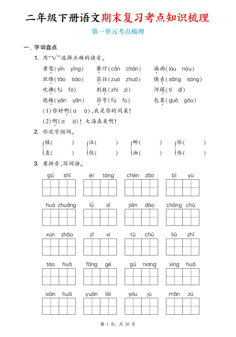当前位置: 首页小学资源小学二年级正文 二下语文期末复习1-8单元考点知识梳理(含答案20页)_共20页 小学二年级 1 周前 0 0 10 以上为部分内容预览,如需源文档请登录您的会员账号进行下载! 声明:本站所有文章,如无特殊说明或标注,均为本站原创发布。任何个人或组织,在未征得本站同意时,禁止复制、盗用、采集、发布本站内容到任何网站、书籍等各类媒体平台。如若本站内容侵犯了原著者的合法权益,可联系我们进行处理。 尚学资源永久会员 打赏 收藏 海报 链接