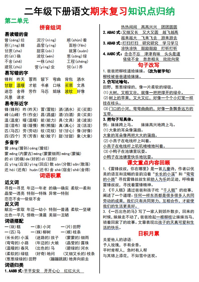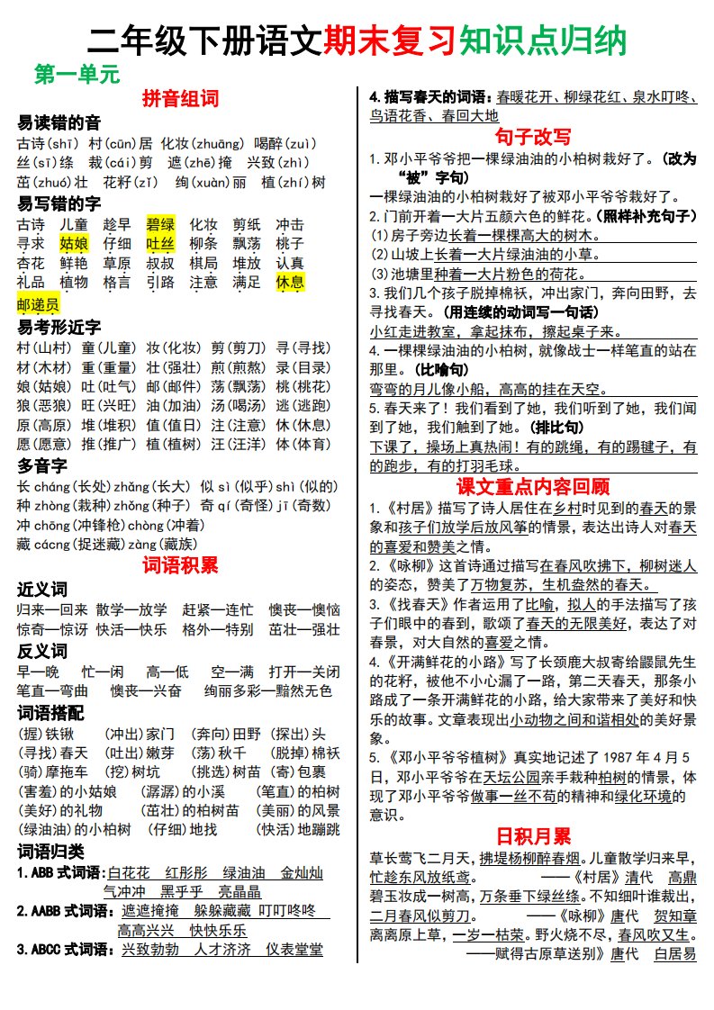 当前位置: 首页小学资源小学二年级正文 二下语文期末复习知识点归纳(8页极简版)_共8页 小学二年级 1 周前 0 0 5 以上为部分内容预览,如需源文档请登录您的会员账号进行下载! 声明:本站所有文章,如无特殊说明或标注,均为本站原创发布。任何个人或组织,在未征得本站同意时,禁止复制、盗用、采集、发布本站内容到任何网站、书籍等各类媒体平台。如若本站内容侵犯了原著者的合法权益,可联系我们进行处理。 尚学资源永久会员 打赏 收藏 海报 链接