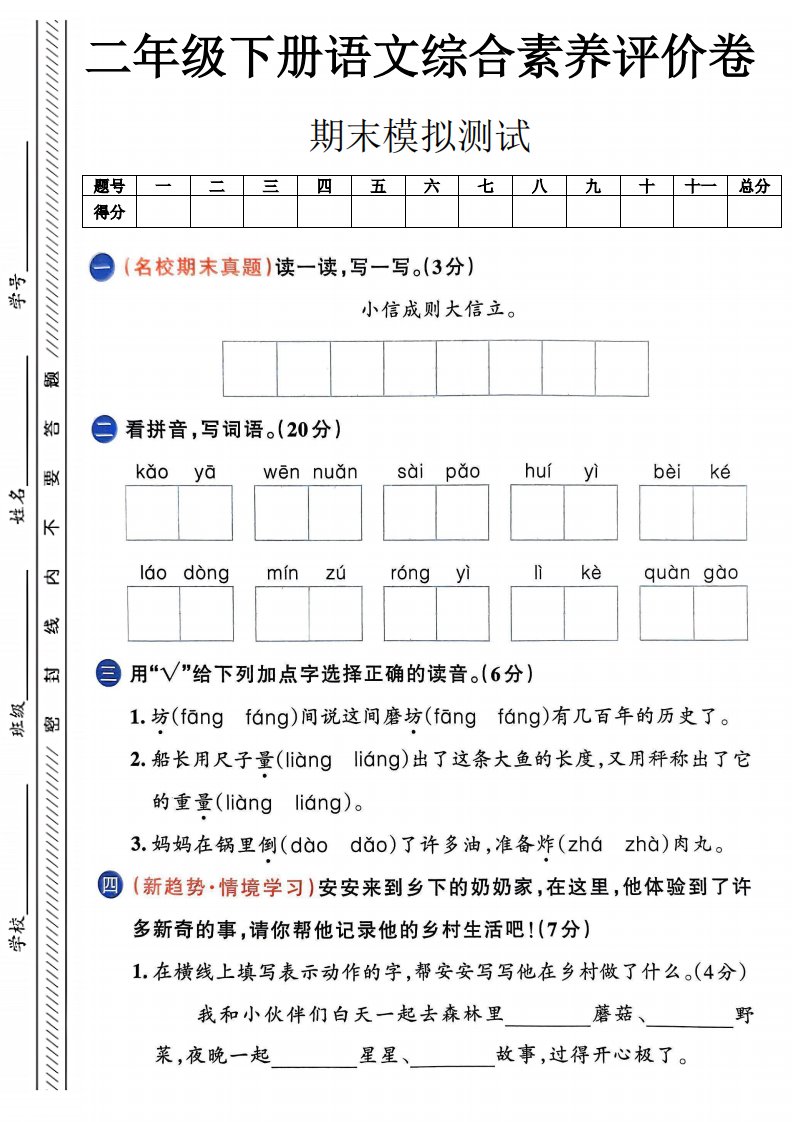 当前位置: 首页小学资源小学二年级正文 二下语文期末综合素养评价卷(含答案5页)_共5页 小学二年级 1 周前 0 0 5 以上为部分内容预览,如需源文档请登录您的会员账号进行下载! 声明:本站所有文章,如无特殊说明或标注,均为本站原创发布。任何个人或组织,在未征得本站同意时,禁止复制、盗用、采集、发布本站内容到任何网站、书籍等各类媒体平台。如若本站内容侵犯了原著者的合法权益,可联系我们进行处理。 尚学资源永久会员 打赏 收藏 海报 链接
