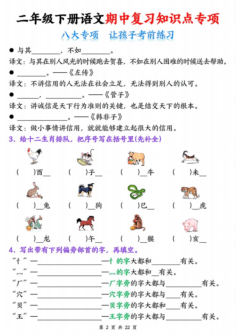二下语文期中复习八大专项知识点专项(空白+答案22页)_共22页