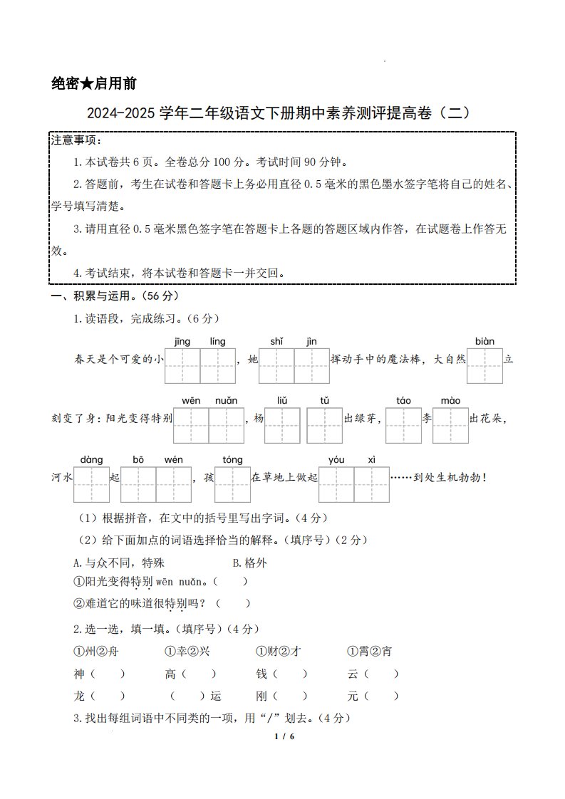 当前位置: 首页小学资源小学二年级正文 24-25学年二下语文期中素养测评卷(提高卷2)含答题卡+答案15页_共15页 小学二年级 1 周前 0 0 10 以上为部分内容预览,如需源文档请登录您的会员账号进行下载! 声明:本站所有文章,如无特殊说明或标注,均为本站原创发布。任何个人或组织,在未征得本站同意时,禁止复制、盗用、采集、发布本站内容到任何网站、书籍等各类媒体平台。如若本站内容侵犯了原著者的合法权益,可联系我们进行处理。 尚学资源永久会员 打赏 收藏 海报 链接