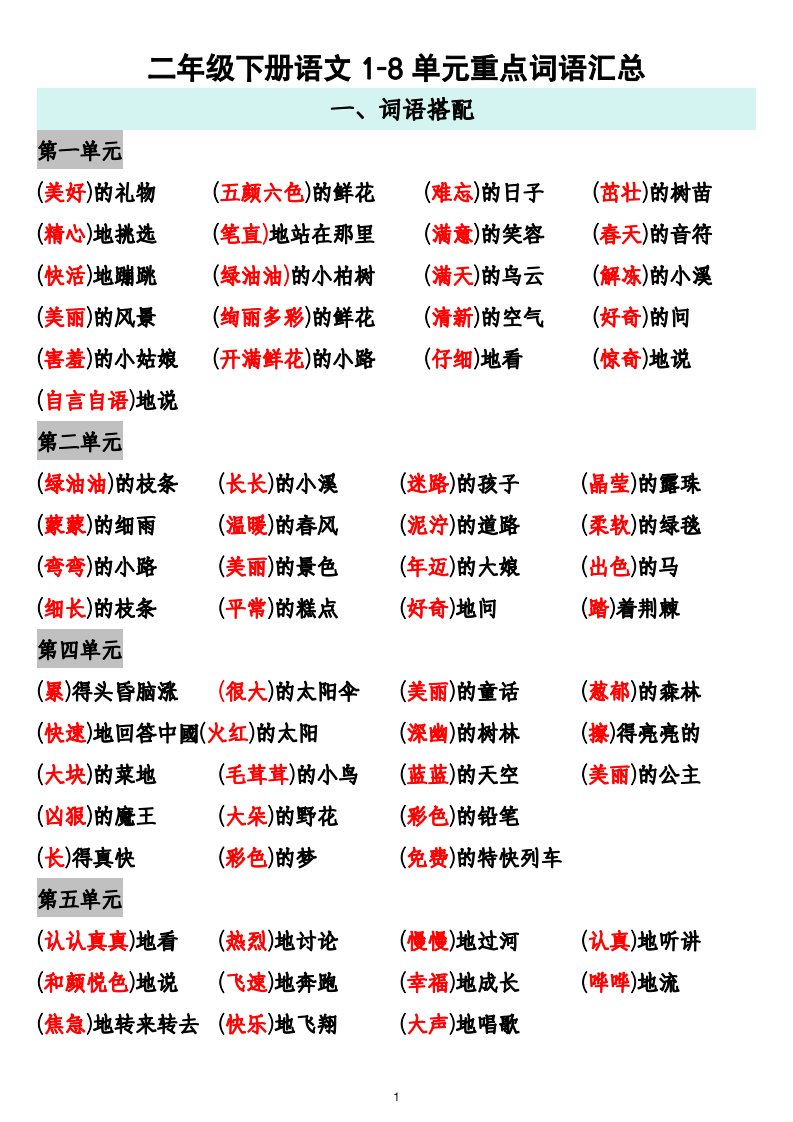 当前位置: 首页小学资源小学二年级正文 二下语文1-8单元重点词语搭配归纳6页_共6页 小学二年级 1 周前 0 0 5 以上为部分内容预览,如需源文档请登录您的会员账号进行下载! 声明:本站所有文章,如无特殊说明或标注,均为本站原创发布。任何个人或组织,在未征得本站同意时,禁止复制、盗用、采集、发布本站内容到任何网站、书籍等各类媒体平台。如若本站内容侵犯了原著者的合法权益,可联系我们进行处理。 尚学资源永久会员 打赏 收藏 海报 链接