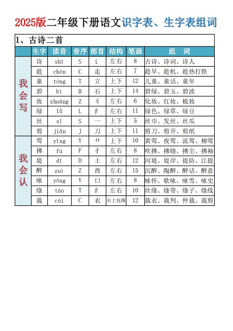 当前位置: 首页小学资源小学二年级正文 2025新版·二年级下册语文识字表、生字表组词_共34页 小学二年级 1 周前 0 0 15 以上为部分内容预览,如需源文档请登录您的会员账号进行下载! 声明:本站所有文章,如无特殊说明或标注,均为本站原创发布。任何个人或组织,在未征得本站同意时,禁止复制、盗用、采集、发布本站内容到任何网站、书籍等各类媒体平台。如若本站内容侵犯了原著者的合法权益,可联系我们进行处理。 尚学资源永久会员 打赏 收藏 海报 链接