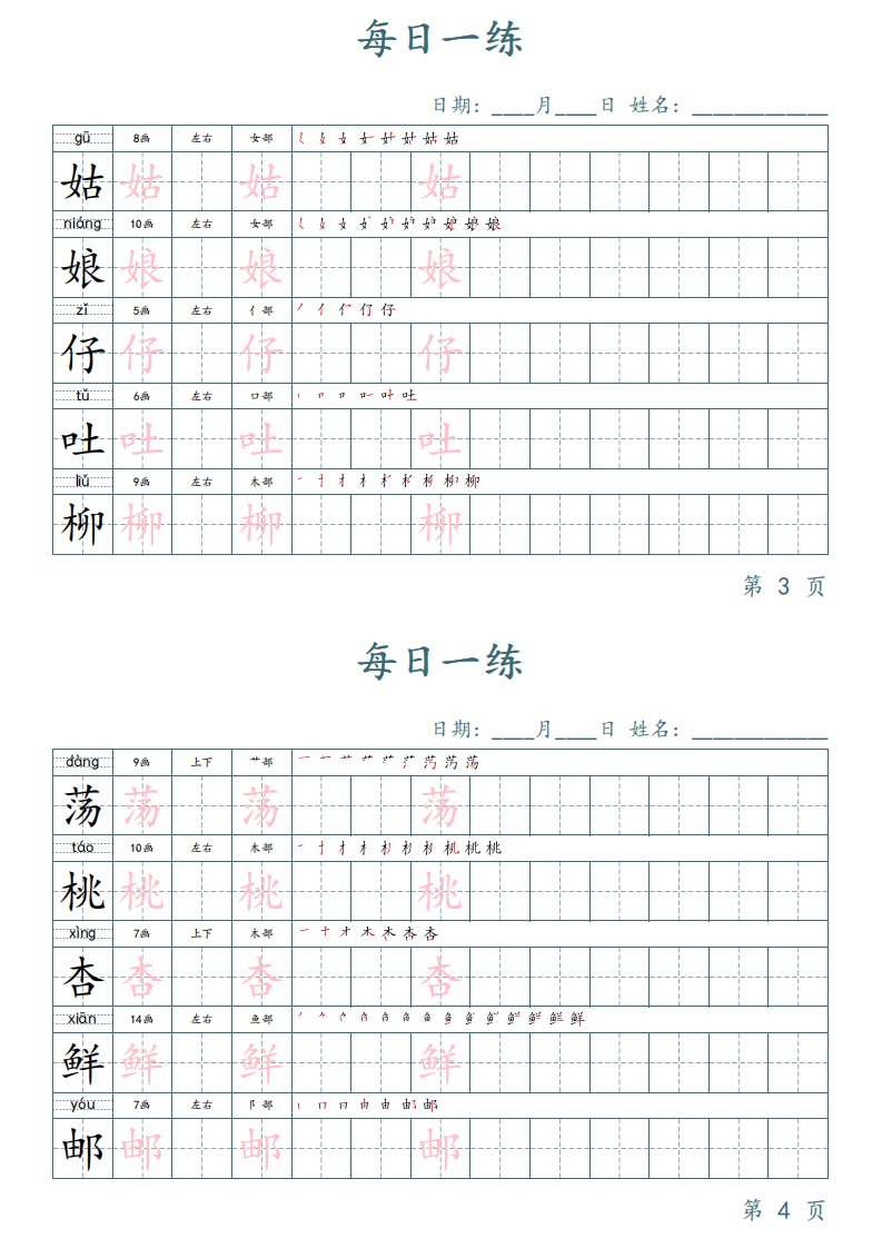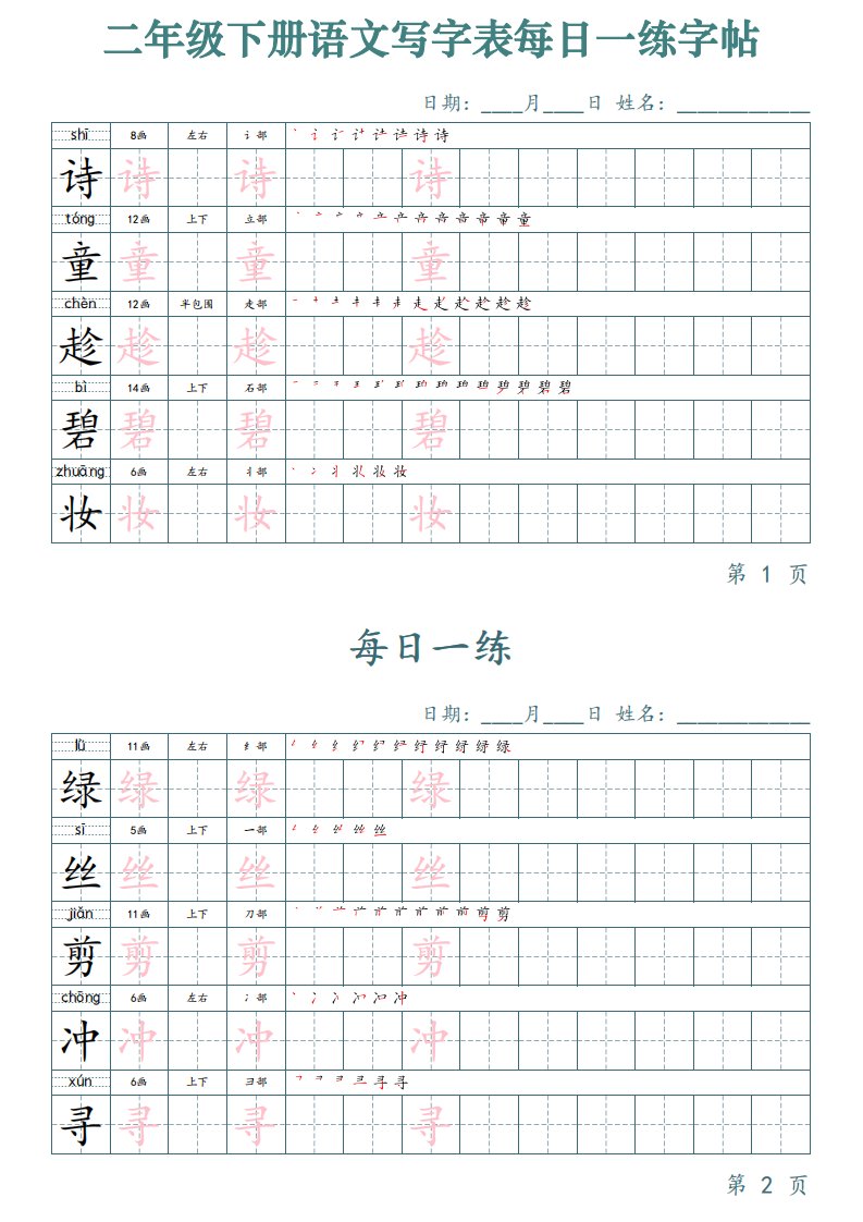 【字帖】二下语文写字表每日一练字帖(50天25页)_共25页