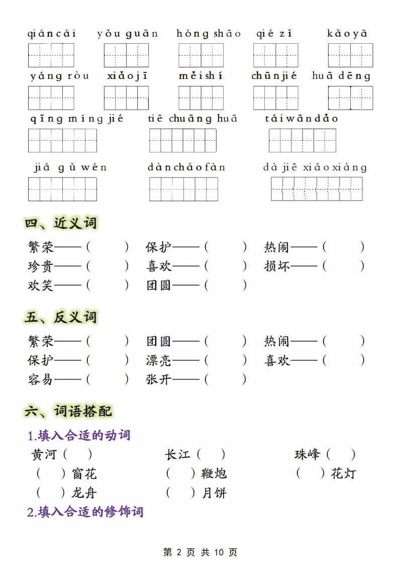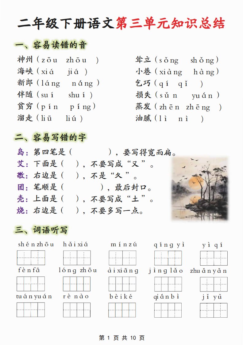 【第三单元】二下语文重点知识总结(填)纯图版10页_共10页