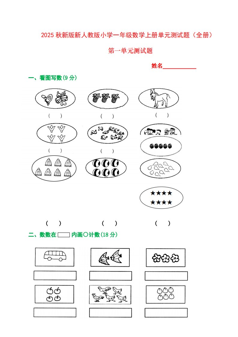 当前位置: 首页小学资源小学一年级正文 【2025秋新版】人教版一年级数学上册1-8单元全套测试题_共91页 小学一年级 2 周前 0 0 15 以上为部分内容预览,如需源文档请登录您的会员账号进行下载! 声明:本站所有文章,如无特殊说明或标注,均为本站原创发布。任何个人或组织,在未征得本站同意时,禁止复制、盗用、采集、发布本站内容到任何网站、书籍等各类媒体平台。如若本站内容侵犯了原著者的合法权益,可联系我们进行处理。 尚学资源永久会员 打赏 收藏 海报 链接
