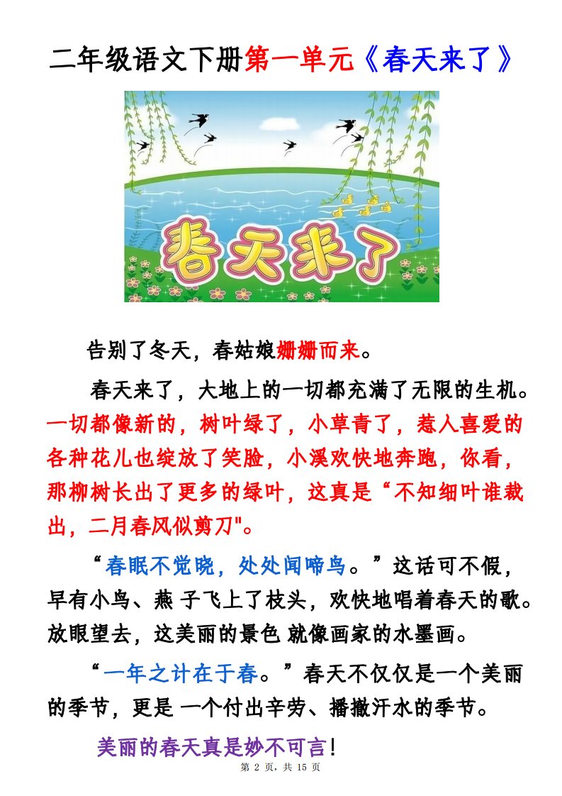 二下语文1-8单元看图写话范文集锦13篇(15页)_共15页