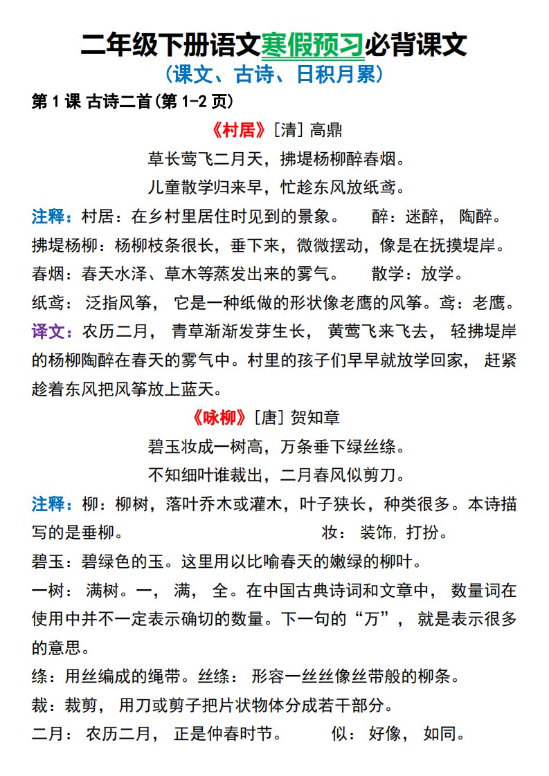 当前位置: 首页小学资源小学二年级正文 二年级下册语文寒假预习必背课文_共6页 小学二年级 1 周前 0 0 5 以上为部分内容预览,如需源文档请登录您的会员账号进行下载! 声明:本站所有文章,如无特殊说明或标注,均为本站原创发布。任何个人或组织,在未征得本站同意时,禁止复制、盗用、采集、发布本站内容到任何网站、书籍等各类媒体平台。如若本站内容侵犯了原著者的合法权益,可联系我们进行处理。 尚学资源永久会员 打赏 收藏 海报 链接