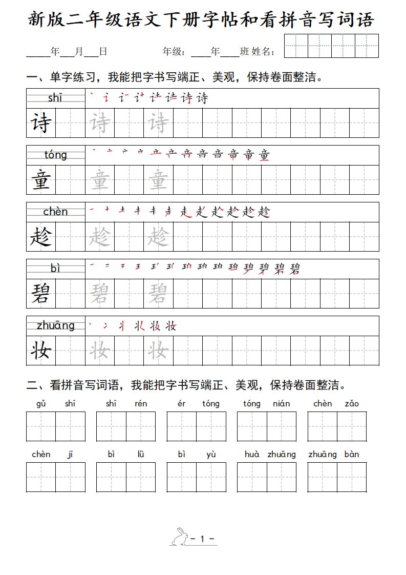 当前位置: 首页小学资源小学二年级正文 新版二下语文字帖和看拼音写词语(50页)_共50页 小学二年级 1 周前 0 0 15 以上为部分内容预览,如需源文档请登录您的会员账号进行下载! 声明:本站所有文章,如无特殊说明或标注,均为本站原创发布。任何个人或组织,在未征得本站同意时,禁止复制、盗用、采集、发布本站内容到任何网站、书籍等各类媒体平台。如若本站内容侵犯了原著者的合法权益,可联系我们进行处理。 尚学资源永久会员 打赏 收藏 海报 链接