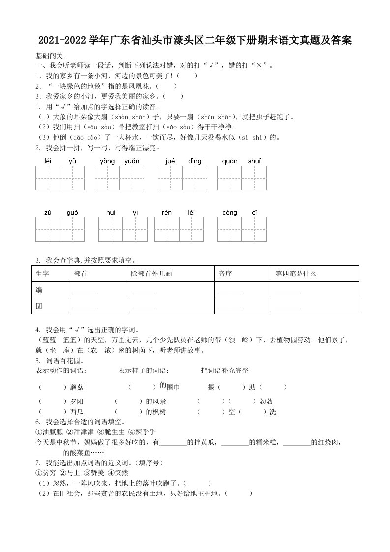 当前位置: 首页小学资源小学二年级正文 2021-2022学年广东省汕头市濠头区二年级下册期末语文真题及答案(Word版)_共10页 小学二年级 1 周前 0 0 5 以上为部分内容预览,如需源文档请登录您的会员账号进行下载! 声明:本站所有文章,如无特殊说明或标注,均为本站原创发布。任何个人或组织,在未征得本站同意时,禁止复制、盗用、采集、发布本站内容到任何网站、书籍等各类媒体平台。如若本站内容侵犯了原著者的合法权益,可联系我们进行处理。 尚学资源永久会员 打赏 收藏 海报 链接