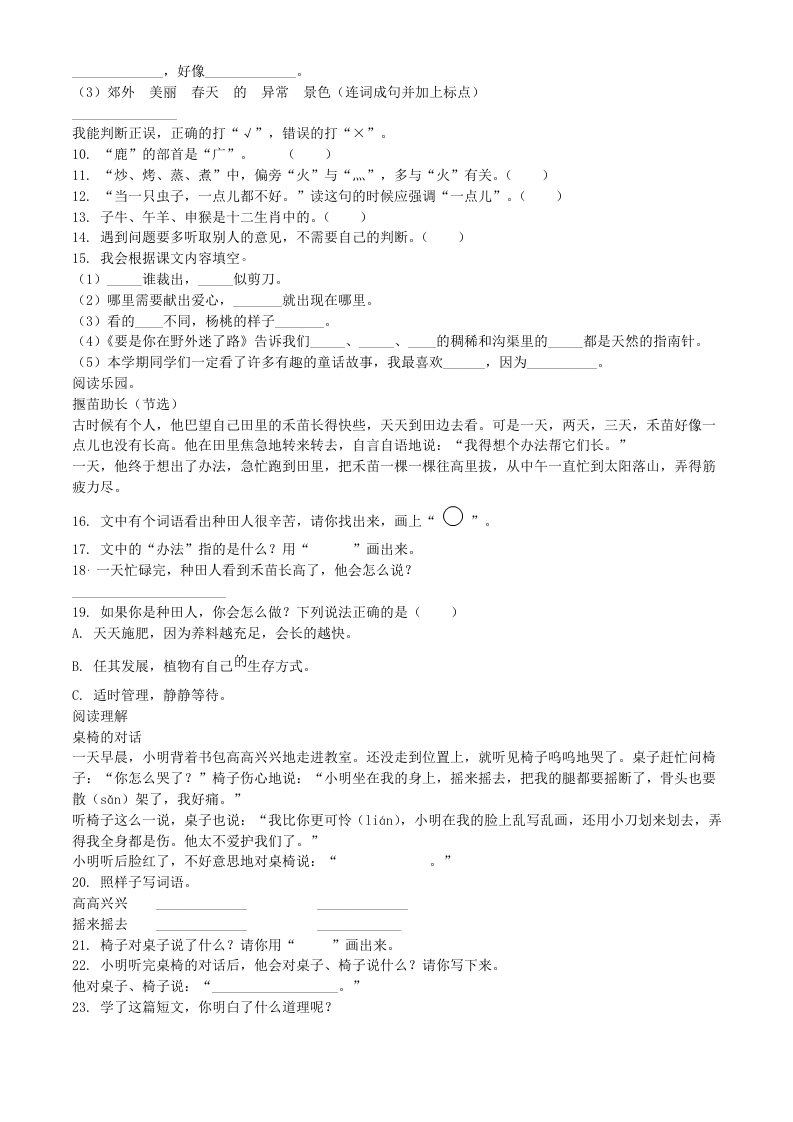 当前位置: 首页小学资源小学二年级正文 2021-2022学年湖北省黄石市大冶市二年级下册期末语文真题及答案(Word版)_共9页 小学二年级 1 周前 0 0 5 以上为部分内容预览,如需源文档请登录您的会员账号进行下载! 声明:本站所有文章,如无特殊说明或标注,均为本站原创发布。任何个人或组织,在未征得本站同意时,禁止复制、盗用、采集、发布本站内容到任何网站、书籍等各类媒体平台。如若本站内容侵犯了原著者的合法权益,可联系我们进行处理。 尚学资源永久会员 打赏 收藏 海报 链接