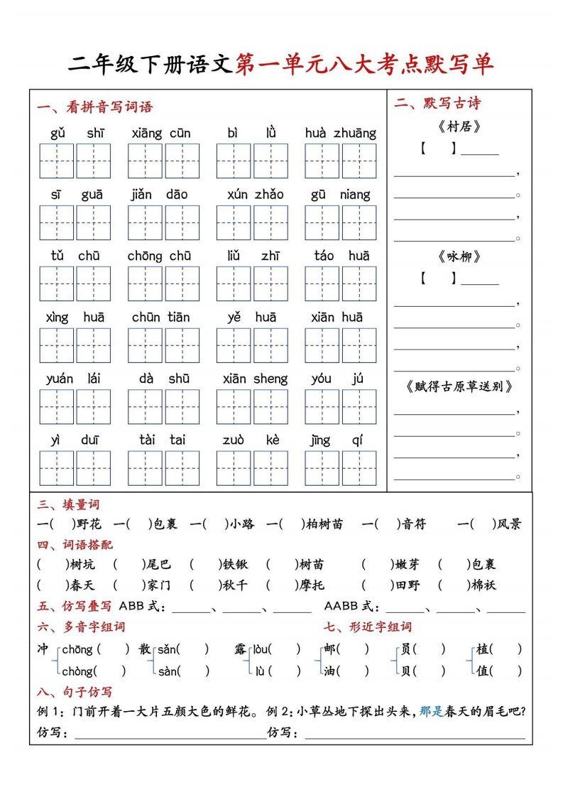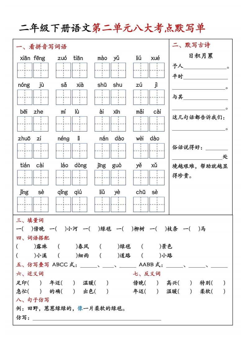 当前位置: 首页小学资源小学二年级正文 二年级下册语文期中1-4单元八大考点默写单_共8页 小学二年级 1 周前 0 0 5 以上为部分内容预览,如需源文档请登录您的会员账号进行下载! 声明:本站所有文章,如无特殊说明或标注,均为本站原创发布。任何个人或组织,在未征得本站同意时,禁止复制、盗用、采集、发布本站内容到任何网站、书籍等各类媒体平台。如若本站内容侵犯了原著者的合法权益,可联系我们进行处理。 尚学资源永久会员 打赏 收藏 海报 链接