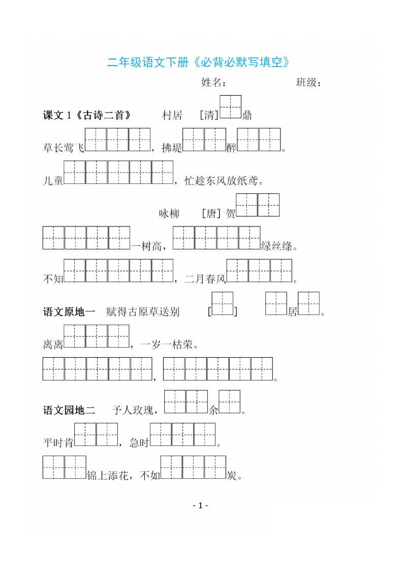 当前位置: 首页小学资源小学二年级正文 二下语文《必背必默写填空》_共4页 小学二年级 1 周前 0 0 5 以上为部分内容预览,如需源文档请登录您的会员账号进行下载! 声明:本站所有文章,如无特殊说明或标注,均为本站原创发布。任何个人或组织,在未征得本站同意时,禁止复制、盗用、采集、发布本站内容到任何网站、书籍等各类媒体平台。如若本站内容侵犯了原著者的合法权益,可联系我们进行处理。 尚学资源永久会员 打赏 收藏 海报 链接