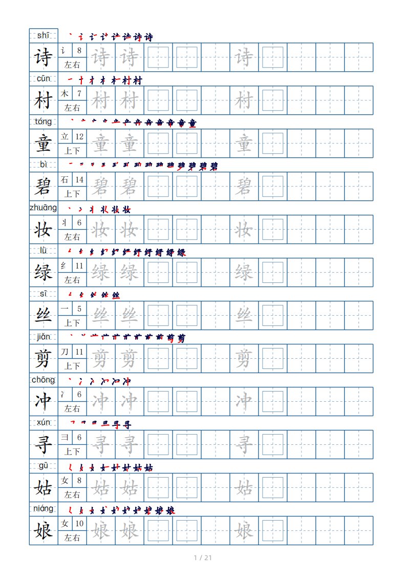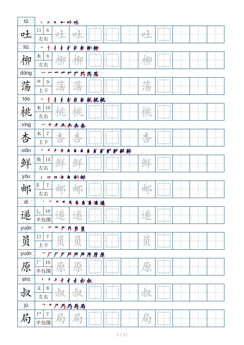 当前位置: 首页小学资源小学二年级正文 二年级下册生字表250个,字帖21页(偏旁部首+笔顺+拼音)_共22页 小学二年级 1 周前 0 0 15 以上为部分内容预览,如需源文档请登录您的会员账号进行下载! 声明:本站所有文章,如无特殊说明或标注,均为本站原创发布。任何个人或组织,在未征得本站同意时,禁止复制、盗用、采集、发布本站内容到任何网站、书籍等各类媒体平台。如若本站内容侵犯了原著者的合法权益,可联系我们进行处理。 尚学资源永久会员 打赏 收藏 海报 链接