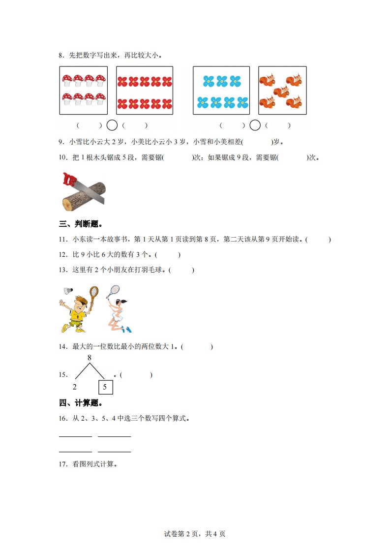 当前位置: 首页小学资源小学一年级正文 冀教版数学一年级上册第一单元《熟悉的数与加减法》单元测试卷_共9页 小学一年级 2 周前 0 0 5 以上为部分内容预览,如需源文档请登录您的会员账号进行下载! 声明:本站所有文章,如无特殊说明或标注,均为本站原创发布。任何个人或组织,在未征得本站同意时,禁止复制、盗用、采集、发布本站内容到任何网站、书籍等各类媒体平台。如若本站内容侵犯了原著者的合法权益,可联系我们进行处理。 尚学资源永久会员 打赏 收藏 海报 链接