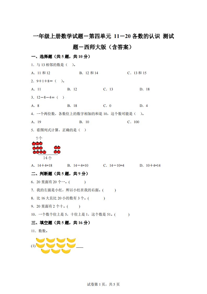 当前位置: 首页小学资源小学一年级正文 西师大版数学一年级上册第四单元《11-20各数的认识》单元测试卷_共13页 小学一年级 2 周前 0 0 10 以上为部分内容预览,如需源文档请登录您的会员账号进行下载! 声明:本站所有文章,如无特殊说明或标注,均为本站原创发布。任何个人或组织,在未征得本站同意时,禁止复制、盗用、采集、发布本站内容到任何网站、书籍等各类媒体平台。如若本站内容侵犯了原著者的合法权益,可联系我们进行处理。 尚学资源永久会员 打赏 收藏 海报 链接