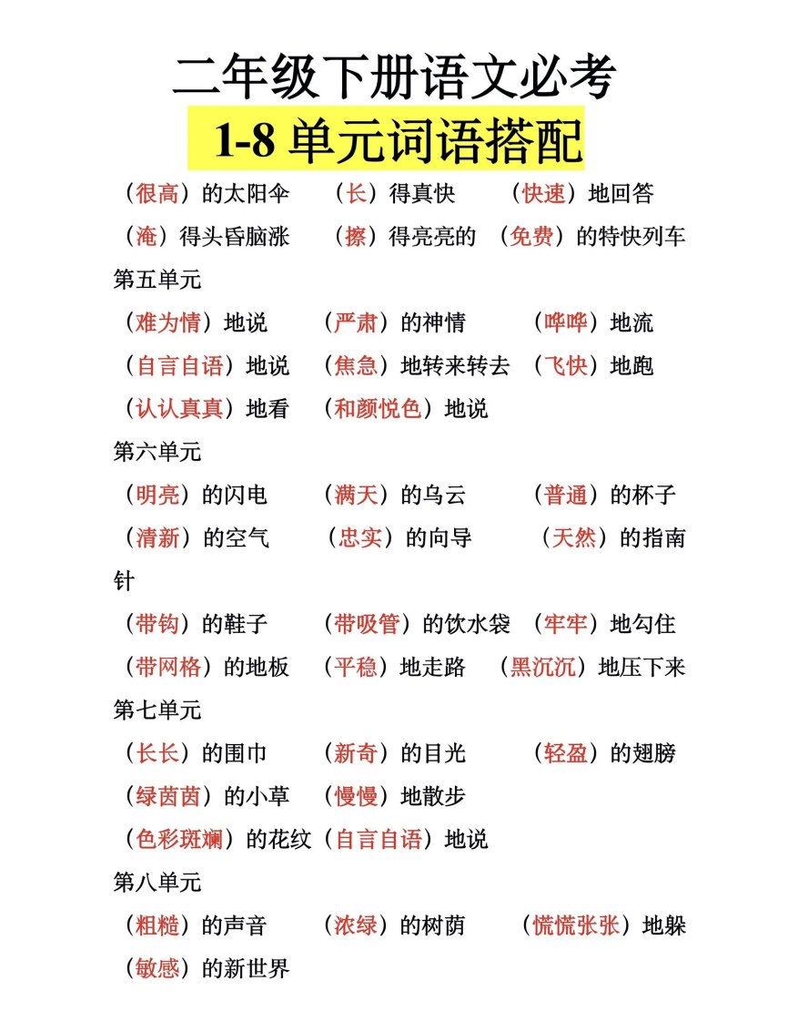 当前位置: 首页小学资源小学二年级正文 二下语文【1-8单元词语搭配】_共2页 小学二年级 1 周前 0 0 5 以上为部分内容预览,如需源文档请登录您的会员账号进行下载! 声明:本站所有文章,如无特殊说明或标注,均为本站原创发布。任何个人或组织,在未征得本站同意时,禁止复制、盗用、采集、发布本站内容到任何网站、书籍等各类媒体平台。如若本站内容侵犯了原著者的合法权益,可联系我们进行处理。 尚学资源永久会员 打赏 收藏 海报 链接