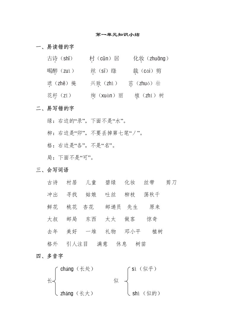 二年级语文下册第一单元知识点梳理_共4页