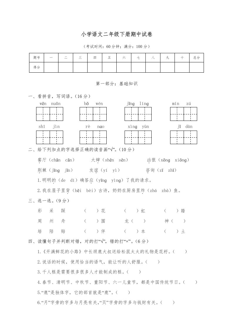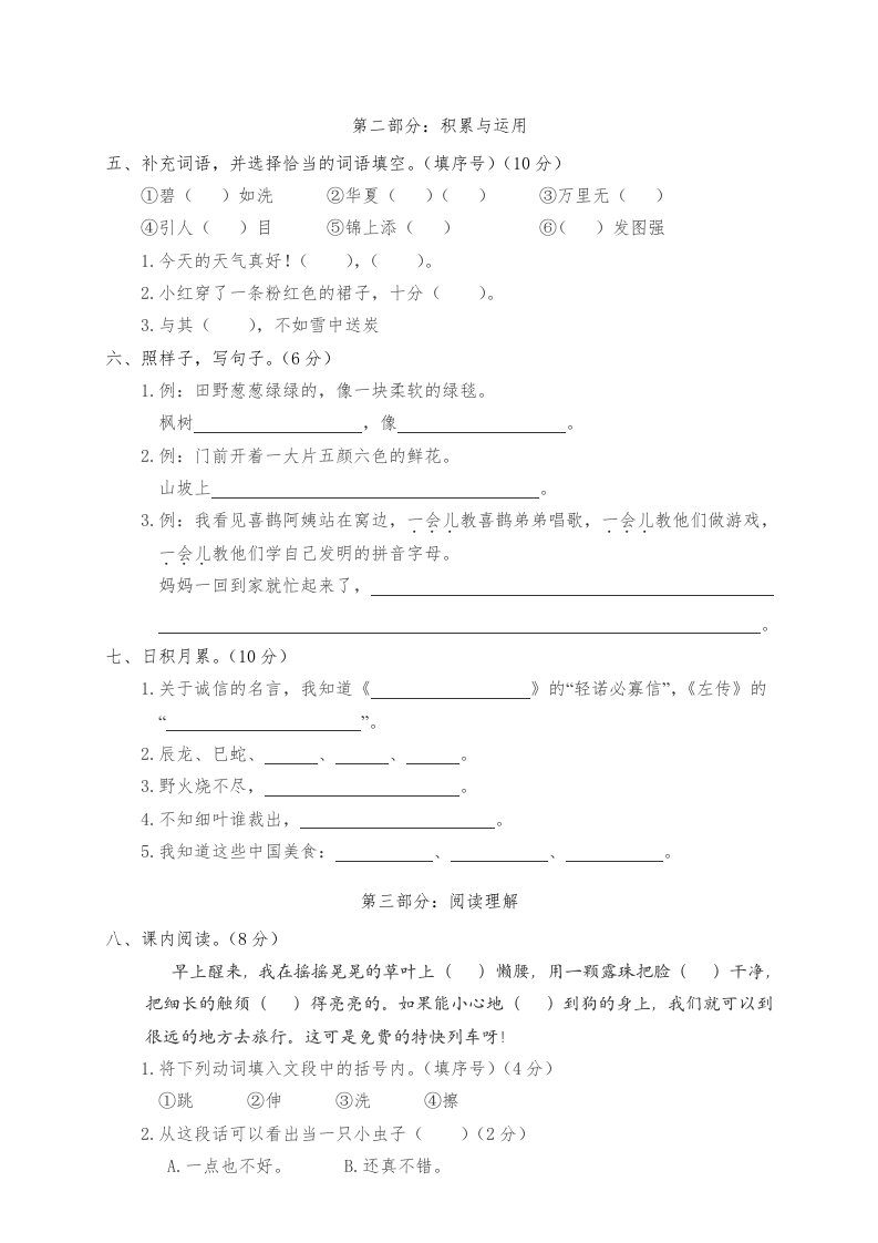 当前位置: 首页小学资源小学二年级正文 二年级语文下册期中试卷4_共4页 小学二年级 1 周前 0 0 5 以上为部分内容预览,如需源文档请登录您的会员账号进行下载! 声明:本站所有文章,如无特殊说明或标注,均为本站原创发布。任何个人或组织,在未征得本站同意时,禁止复制、盗用、采集、发布本站内容到任何网站、书籍等各类媒体平台。如若本站内容侵犯了原著者的合法权益,可联系我们进行处理。 尚学资源永久会员 打赏 收藏 海报 链接