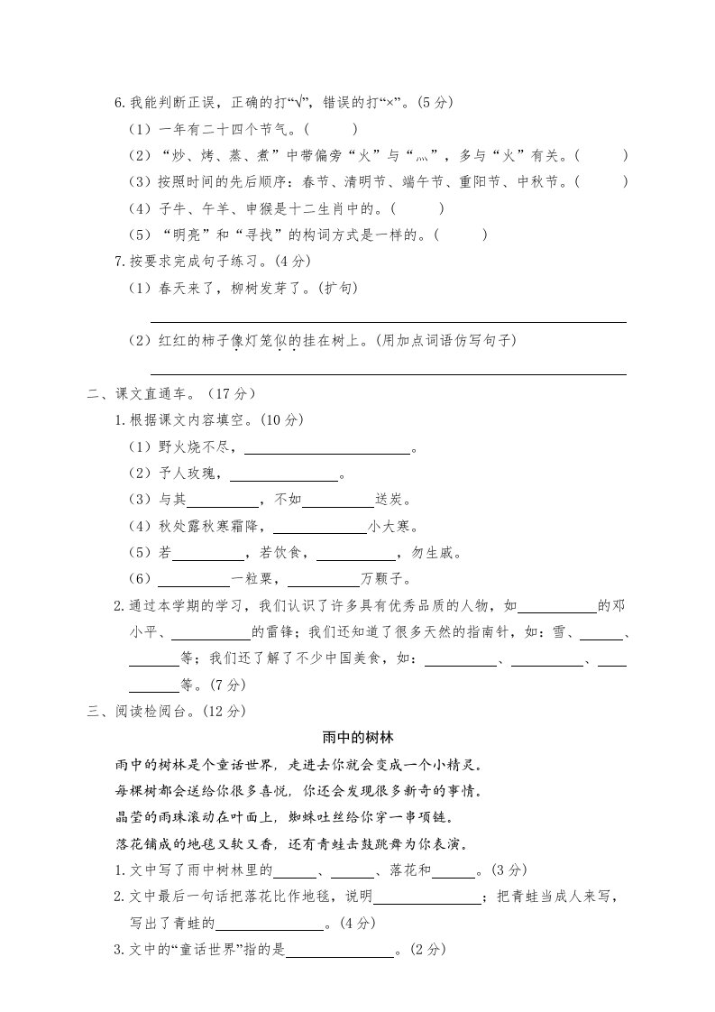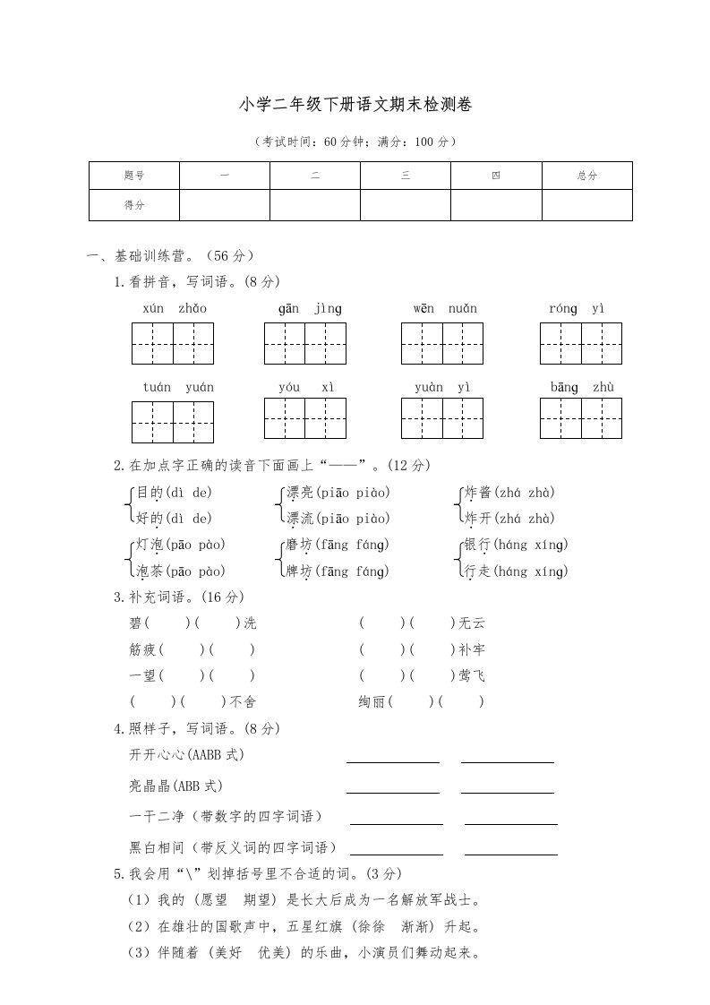 当前位置: 首页小学资源小学二年级正文 二年级语文下册期末试卷6_共4页 小学二年级 1 周前 0 0 5 以上为部分内容预览,如需源文档请登录您的会员账号进行下载! 声明:本站所有文章,如无特殊说明或标注,均为本站原创发布。任何个人或组织,在未征得本站同意时,禁止复制、盗用、采集、发布本站内容到任何网站、书籍等各类媒体平台。如若本站内容侵犯了原著者的合法权益,可联系我们进行处理。 尚学资源永久会员 打赏 收藏 海报 链接