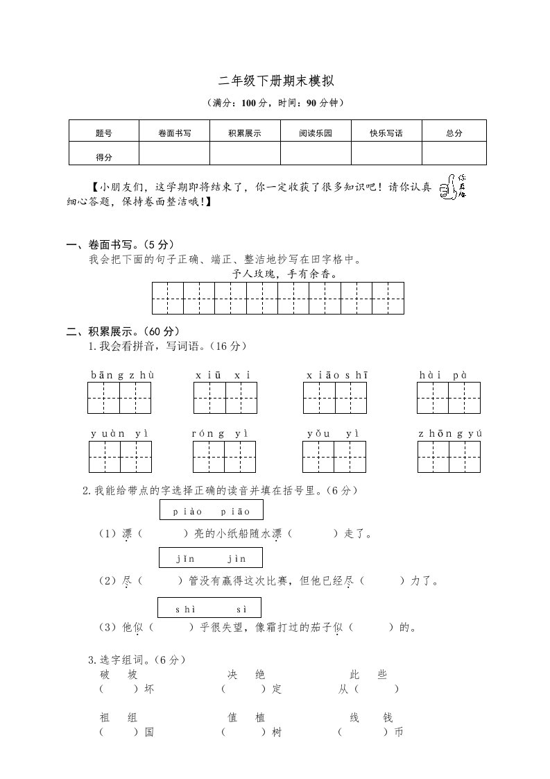 当前位置: 首页小学资源小学二年级正文 二年级语文下册期末试卷8_共6页 小学二年级 1 周前 0 0 5 以上为部分内容预览,如需源文档请登录您的会员账号进行下载! 声明:本站所有文章,如无特殊说明或标注,均为本站原创发布。任何个人或组织,在未征得本站同意时,禁止复制、盗用、采集、发布本站内容到任何网站、书籍等各类媒体平台。如若本站内容侵犯了原著者的合法权益,可联系我们进行处理。 尚学资源永久会员 打赏 收藏 海报 链接
