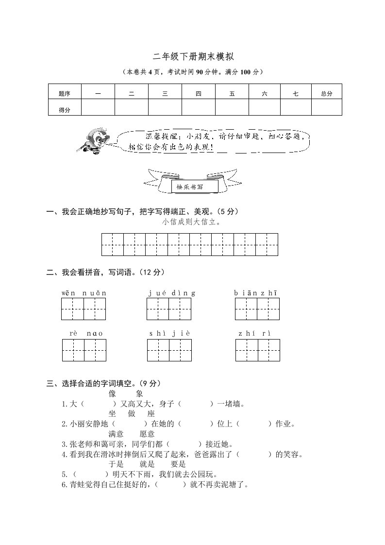 当前位置: 首页小学资源小学二年级正文 二年级语文下册期末试卷11_共4页 小学二年级 1 周前 0 0 5 以上为部分内容预览,如需源文档请登录您的会员账号进行下载! 声明:本站所有文章,如无特殊说明或标注,均为本站原创发布。任何个人或组织,在未征得本站同意时,禁止复制、盗用、采集、发布本站内容到任何网站、书籍等各类媒体平台。如若本站内容侵犯了原著者的合法权益,可联系我们进行处理。 尚学资源永久会员 打赏 收藏 海报 链接