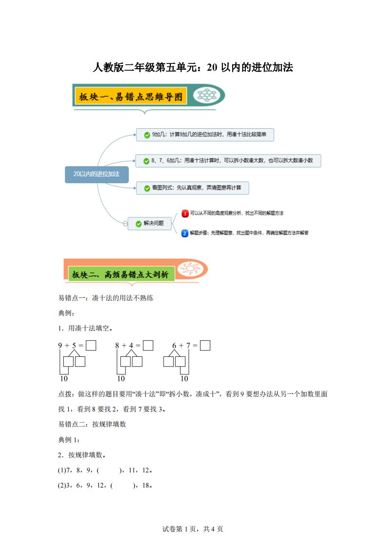 人教版数学一年级上册第五单元《20以内的进位加法》易错点大全_共9页