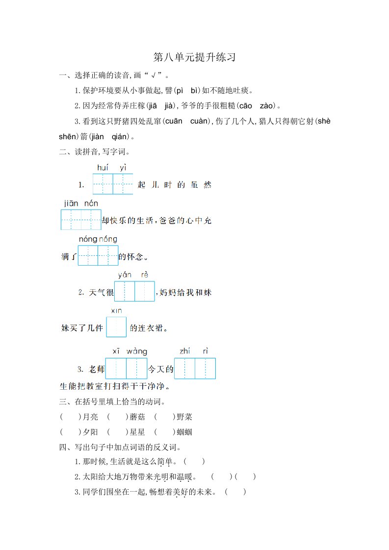 当前位置: 首页小学资源小学二年级正文 二年级语文下册第八单元提升练习一_共4页 小学二年级 1 周前 0 0 5 以上为部分内容预览,如需源文档请登录您的会员账号进行下载! 声明:本站所有文章,如无特殊说明或标注,均为本站原创发布。任何个人或组织,在未征得本站同意时,禁止复制、盗用、采集、发布本站内容到任何网站、书籍等各类媒体平台。如若本站内容侵犯了原著者的合法权益,可联系我们进行处理。 尚学资源永久会员 打赏 收藏 海报 链接