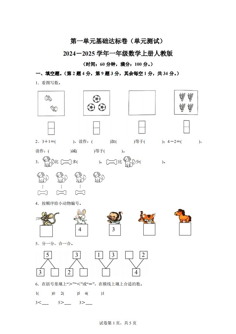 当前位置: 首页小学资源小学一年级正文 人教版数学一年级上册第一单元《5以内数的认识和加、减法》单元测试卷_共12页 小学一年级 2 周前 0 0 10 以上为部分内容预览,如需源文档请登录您的会员账号进行下载! 声明:本站所有文章,如无特殊说明或标注,均为本站原创发布。任何个人或组织,在未征得本站同意时,禁止复制、盗用、采集、发布本站内容到任何网站、书籍等各类媒体平台。如若本站内容侵犯了原著者的合法权益,可联系我们进行处理。 尚学资源永久会员 打赏 收藏 海报 链接