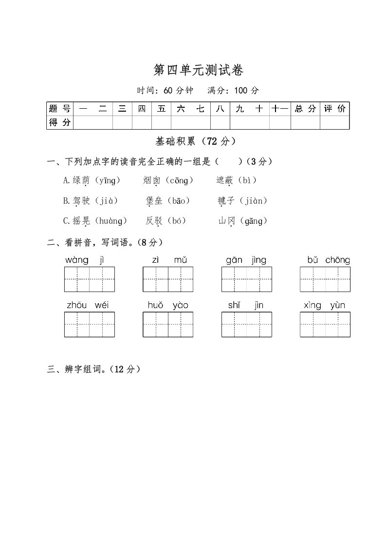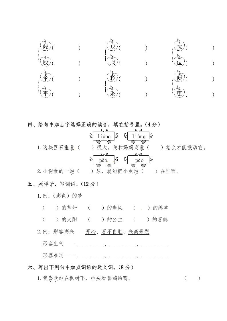 二年级语文下册试题-第四单元测试卷(附答案)人教部编版_共7页